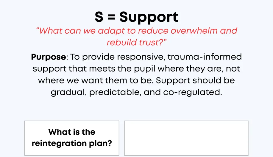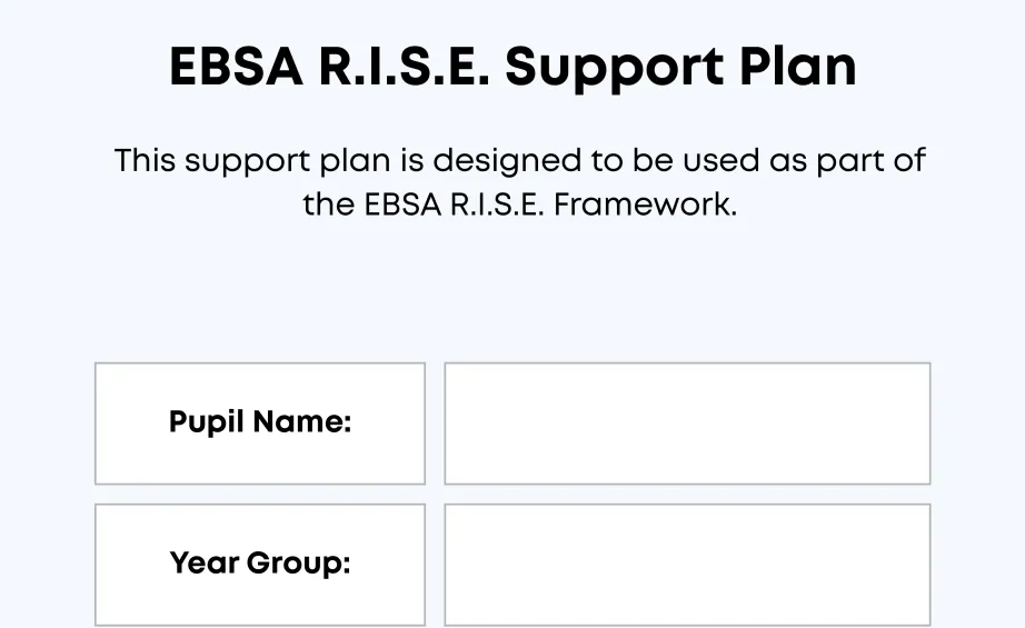 Our EBSA Support Plan, built around the R.I.S.E. framework, offers a practical way for schools and families to work together. It ensures early identification of needs, supportive strategies, and a collaborative approach that keeps the child at the centre.